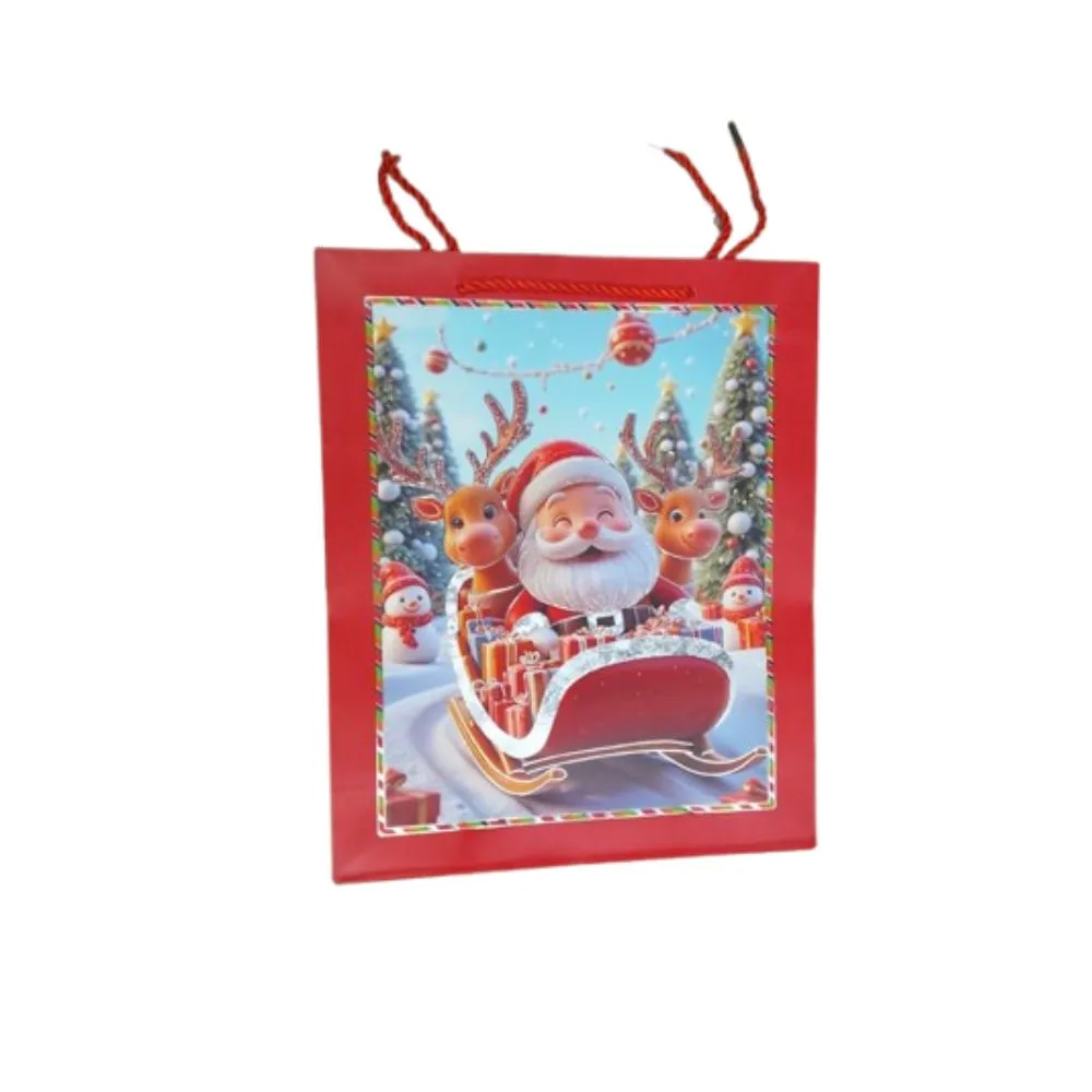 Sorprende a tus seres queridos con esta hermosa bolsa de regalo de 26x10x32 cm decorada con motivos navideños. Perfecta para envolver tus obsequios con estilo y darle un toque mágico a cada presente. Ideal para regalos grandes o pequeños, resistente y reutilizable.