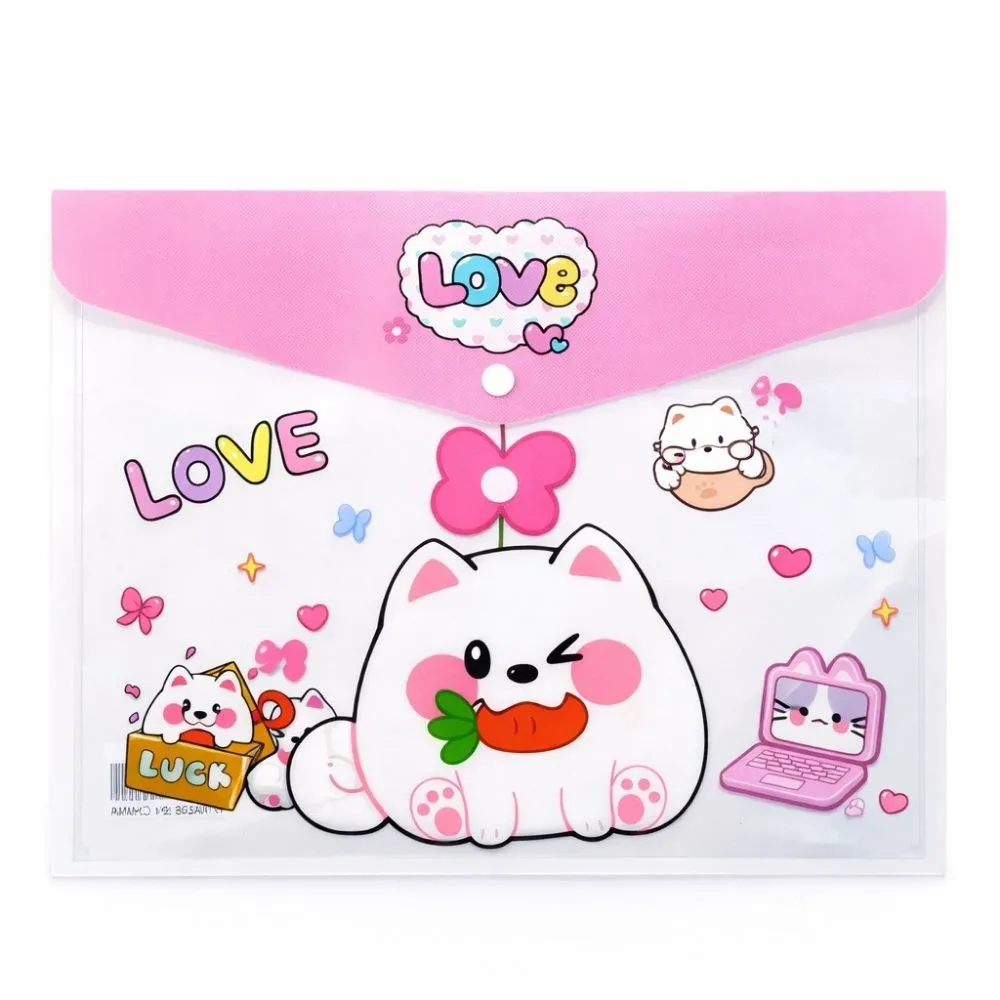 Carpeta sobre de plástico con botón, ideal para organizar y proteger documentos tamaño carta u oficio. Bolsa transparente con diseño, fabricada en material resistente y flexible. Medidas 35 x 25 cm, perfecta para escuela, oficina o uso personal. Práctica, ligera y reutilizable para mantener papeles ordenados y visibles.