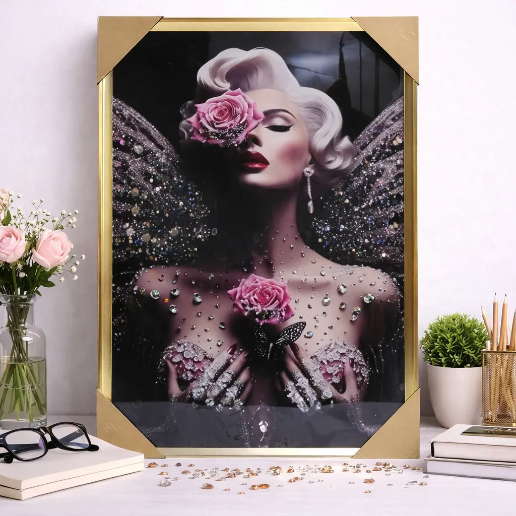 Cuadro con Detalles de Piedra Decorativa – 40×60 cm – Mujer Flor
