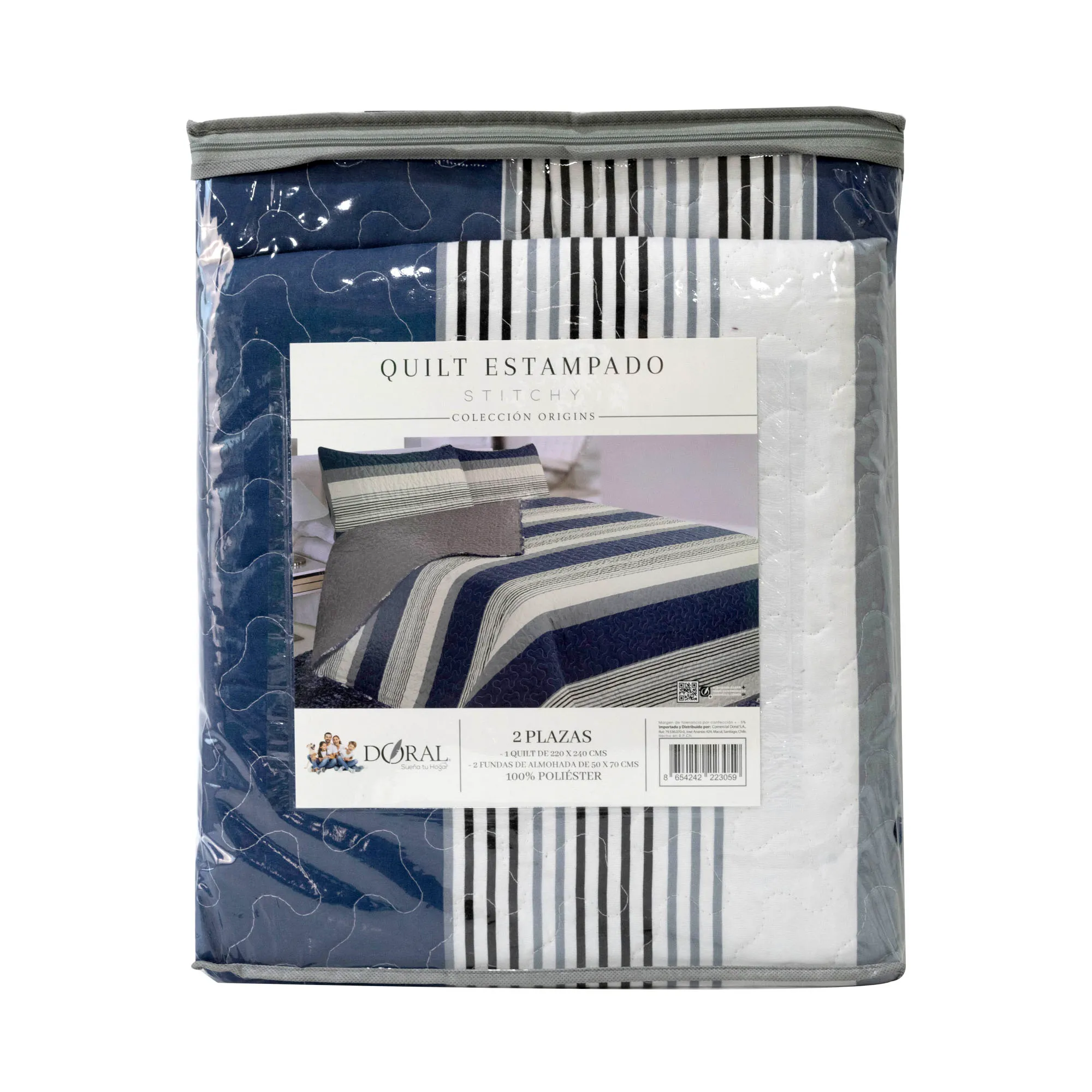 Agrega elegancia y confort a tu dormitorio con el cubrecama Quilt Stitchy King Size de Doral. Con un diseño bordado de alta calidad, esta pieza ofrece estilo y suavidad incomparables. Su tamaño generoso de 250×240 cm garantiza un ajuste perfecto para camas tamaño king, cubriendo completamente con caída elegante en los costados.