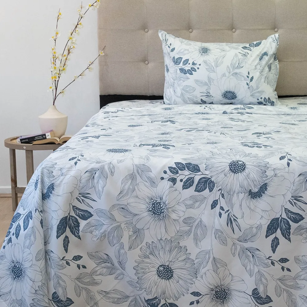 Juego de Sábanas Aterciopeladas Hoja Azul 210 Hilos TOMISA 1.5 Plazas