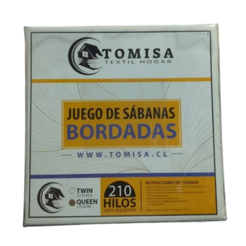 Renueva tu dormitorio con el juego de sábanas bordadas Tomisa de 2 plazas, confeccionado en 100% poliéster de 210 hilos, ideal para quienes buscan suavidad, resistencia y fácil mantenimiento. Su diseño bordado elegante aporta un toque moderno y decorativo, perfecto para todo tipo de ambientes.