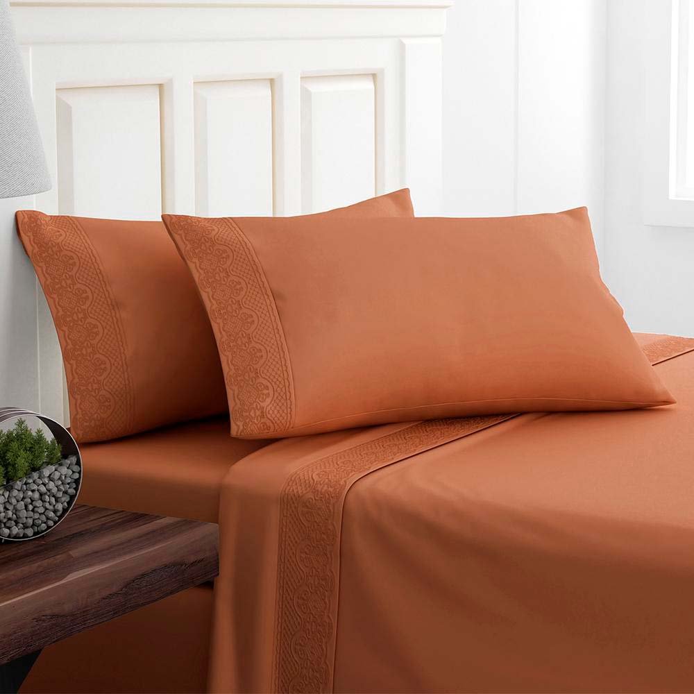 JUEGO DE SABANAS BRODERIE SANTORINI 1.5 PLAZAS – TERRACOTA