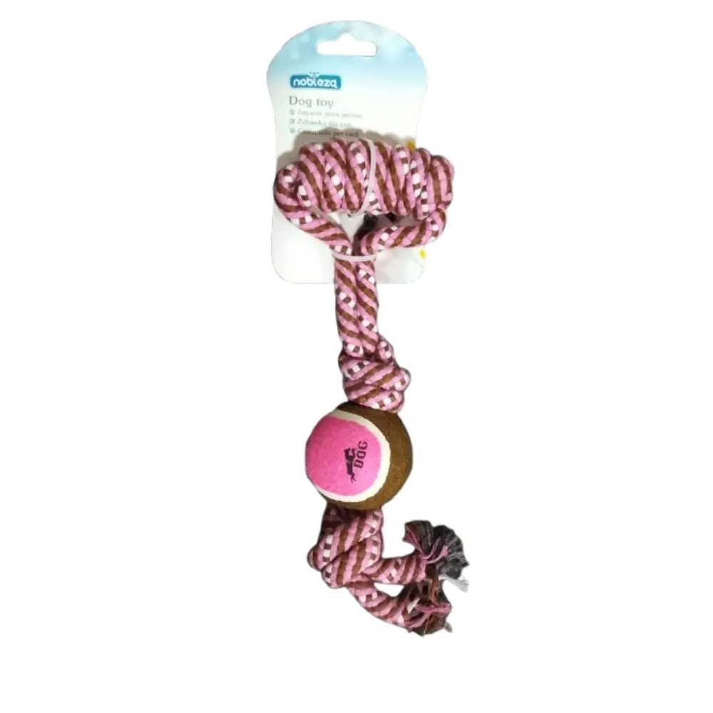 Mantén a tu perro activo y feliz con el juguete Nobleza de soga y pelota tipo tenis. Ideal para morder, tirar y jugar, ayuda a la higiene bucodental mientras fortalece los dientes y encías. Hecho con cuerda trenzada duradera y pelota resistente, perfecto para perros de todas las edades.