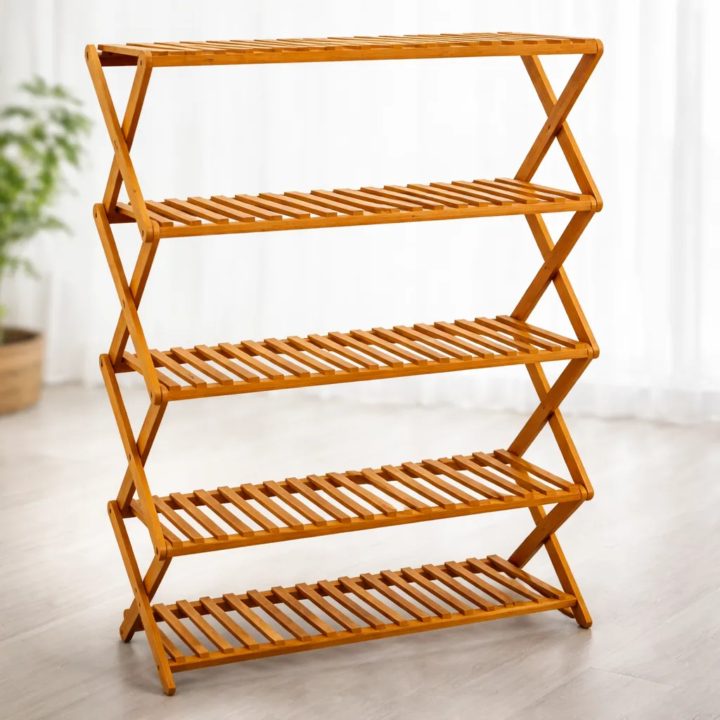 El organizador de zapatos de madera de 5 niveles es ideal para mantener el calzado ordenado y bien organizado, aprovechando el espacio en forma vertical. Con una altura aproximada de 1 metro, permite almacenar varios pares de zapatos sin ocupar demasiado espacio en el suelo.