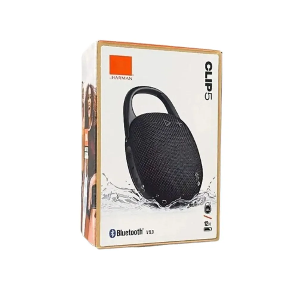 Disfruta de un sonido potente y claro con la Bocina Portátil Clip 5, diseñada para acompañarte a donde vayas. Cuenta con 12 horas de reproducción continua, potencia de 8W con Super Bass para graves profundos y envolventes, y resistencia al agua IPX6, ideal para exteriores, playa o entrenamientos. Su práctico clip integrado permite sujetarla fácilmente a mochilas o bicicletas. Compacta, resistente y lista para la aventura.