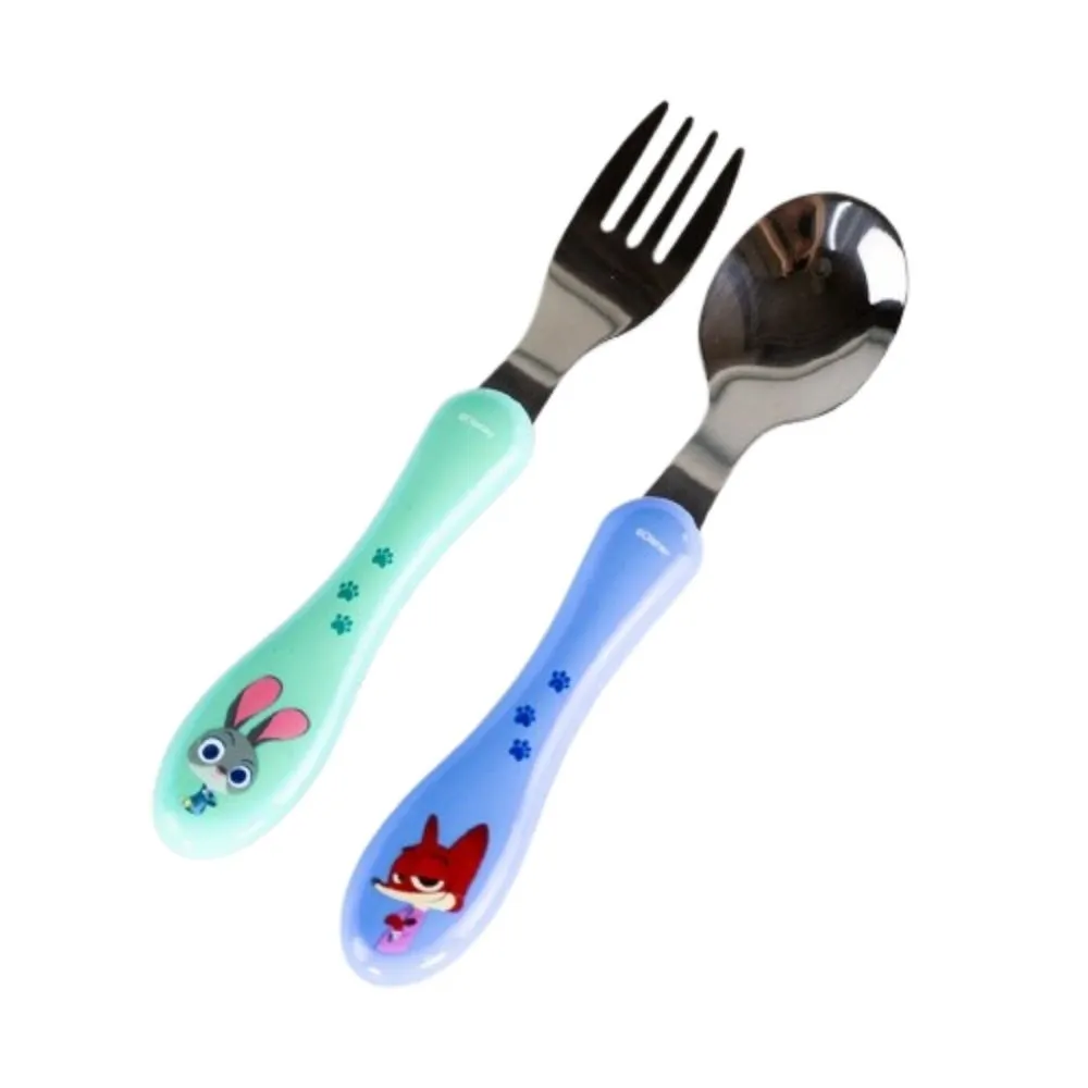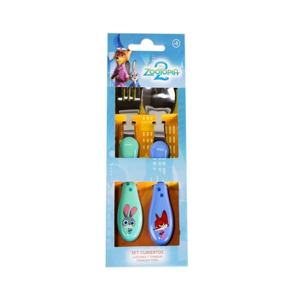 Disfruta las comidas de una forma divertida con este encantador set de cubiertos metálicos de Zootopia, que incluye cuchara y tenedor. Cada pieza cuenta con mangos decorados con los populares personajes Judy Hopps y Nick Wilde, perfectos para los pequeños fans de la película. Están fabricados en acero inoxidable, lo que garantiza durabilidad y resistencia en el uso diario.