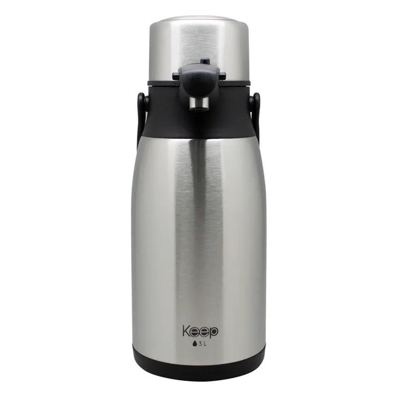 El Termo Sifón KEEP de 3.0 litros en color negro está fabricado en acero inoxidable de alta calidad, ideal para conservar agua, café o té caliente o frío por más tiempo. Su sistema sifón permite servir fácilmente con una sola mano, siendo perfecto para el hogar, oficina o eventos. Diseño elegante, resistente y de gran capacidad, pensado para un uso diario y prolongado.