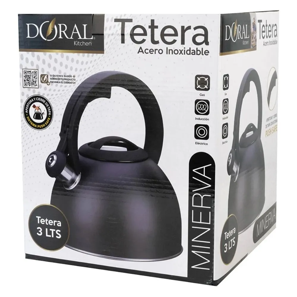 Tetera Doral Minerva 3 Litros – Acero Inoxidable con Silbato – Negra